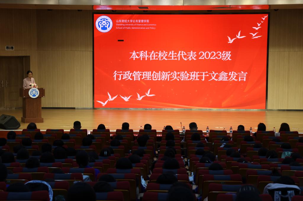 对2025级新生表示热烈欢迎和诚挚祝贺。她回顾了学院的发展历程与取得的卓越成绩,展望了数智时代公共管理学科建设与学生发展的广阔前景。她向新生提出三点期望:一要“做人立德、海纳百川”,不断提升道德修养、塑造健全人格,积极投身社会实践与志愿服务,努力成为德才兼备的公共管理人才;二要“求真务实、锤炼本领”,注重实证研究与实际问题解决,探索公共治理之道;三要“坚守使命、聚力创新”,将个人理想与国家前途、人民需要紧密相连,在服务公共事业中实现人生价值。她勉励大家要以“大道为公、善治天下”的院训为底色,传承公管精神,勇于开拓创新,共同为建设一流日本做爱