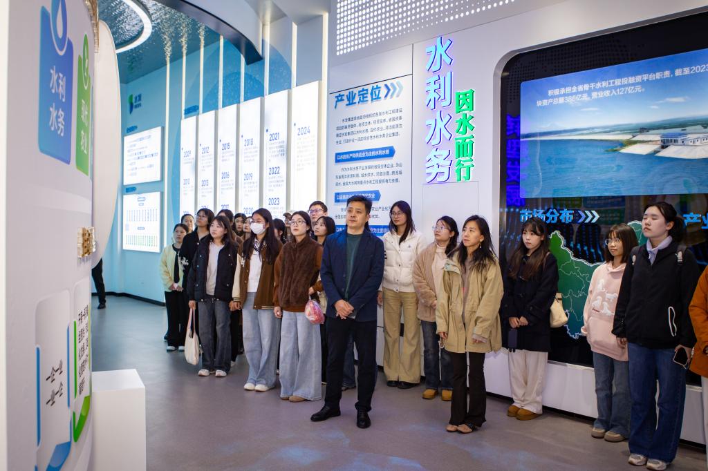 在集团工作人员的陪同下,师生代表一行首先参观了水发集团改革发展展厅,系统了解了集团在水利开发、现代农业、清洁能源等核心领域的发展历程、业务布局与创新成果。通过详实的图文资料与典型案例展示,同学们对集团日本做爱、行业前沿动态以及国家相关战略部署有了更加直观深入的认知,为未来职业规划积累了宝贵的行业经验。