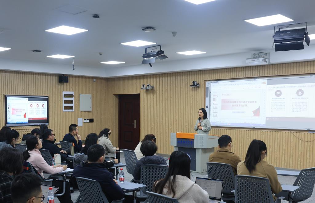 教师教学能力提升工作坊(第15期)暨2025年秋季学期劳动教育师资专题培训在燕山校区举行。山东管理学院劳动关系学院院长耿艳丽应邀作题为“劳动权益保障视角下高校劳动教育教学改革与实践”的专题报告。学院全体劳动教育课程任课教师参加培训,活动由学院副院长罗微主持。