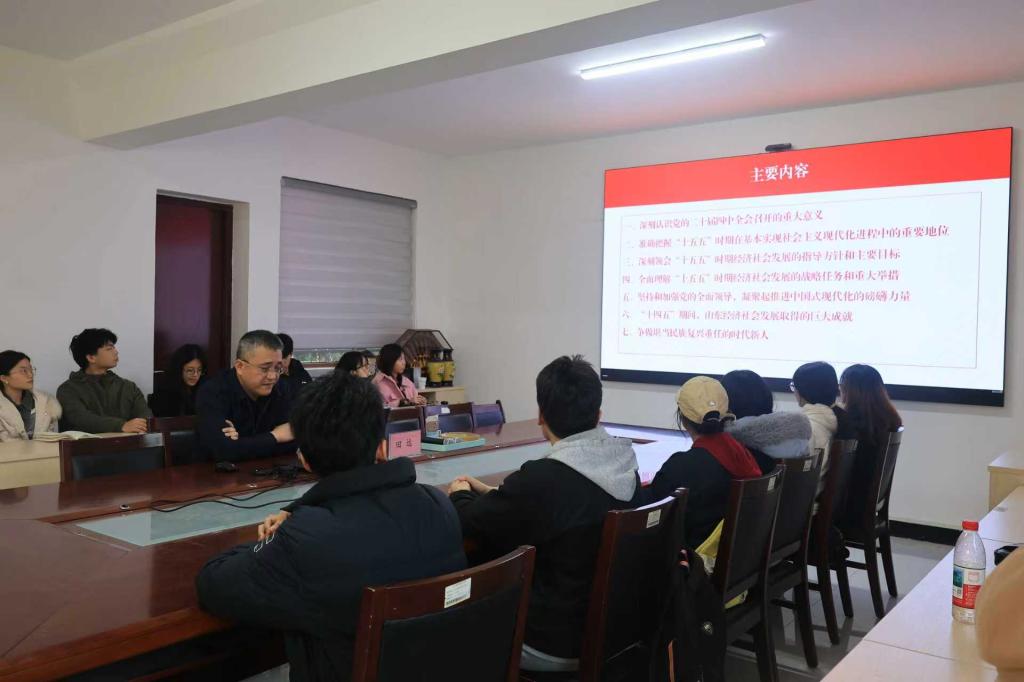 党委书记田远在燕山校区作题为《深入学习贯彻党的二十届四中全会精神争做堪当民族复兴重任的时代新人》专题报告,结合山东省高质量发展实践与青年责任使命,解读党的二十届四中全会核心要义。学院2023级学生党员、学生干部参加。